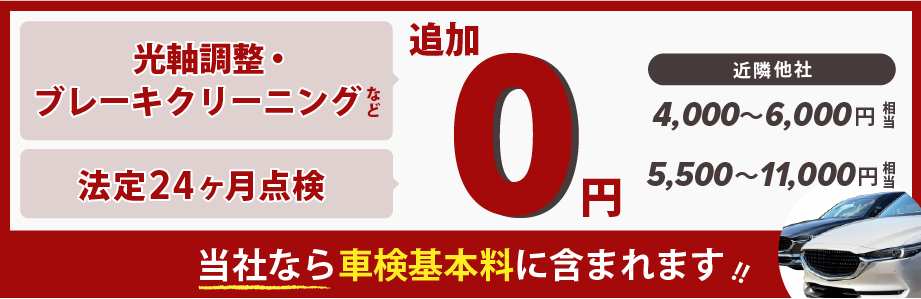 当店では上記のすべて、ホームページに記載してある車検基本料に含まれていますので、ご安心ください。
