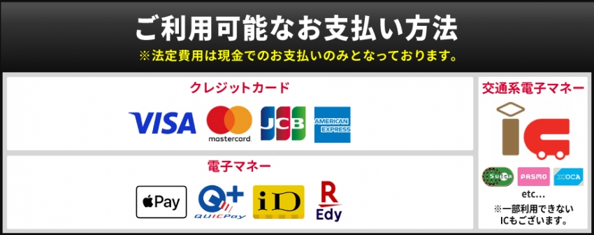 ※法定費用は現金でのみのお支払となります。ご容赦ください。